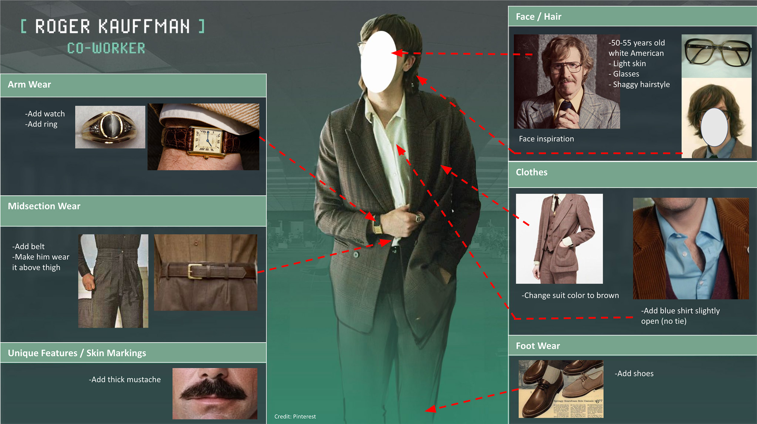 Roger Kauffman is the co-worker whom the Player meets first, providing some initial clues to their questions – without clearly and explicitly answering them.