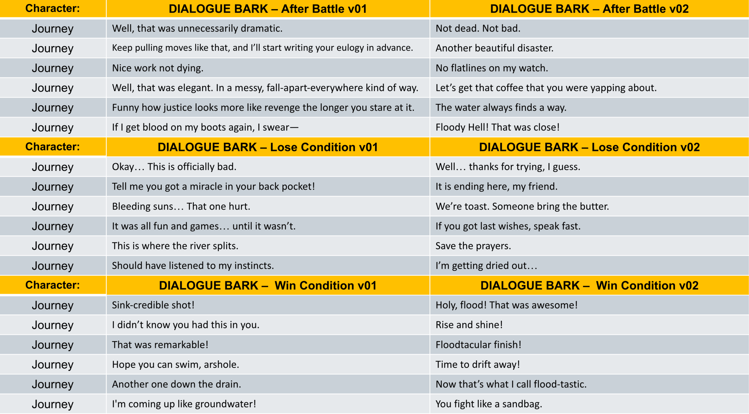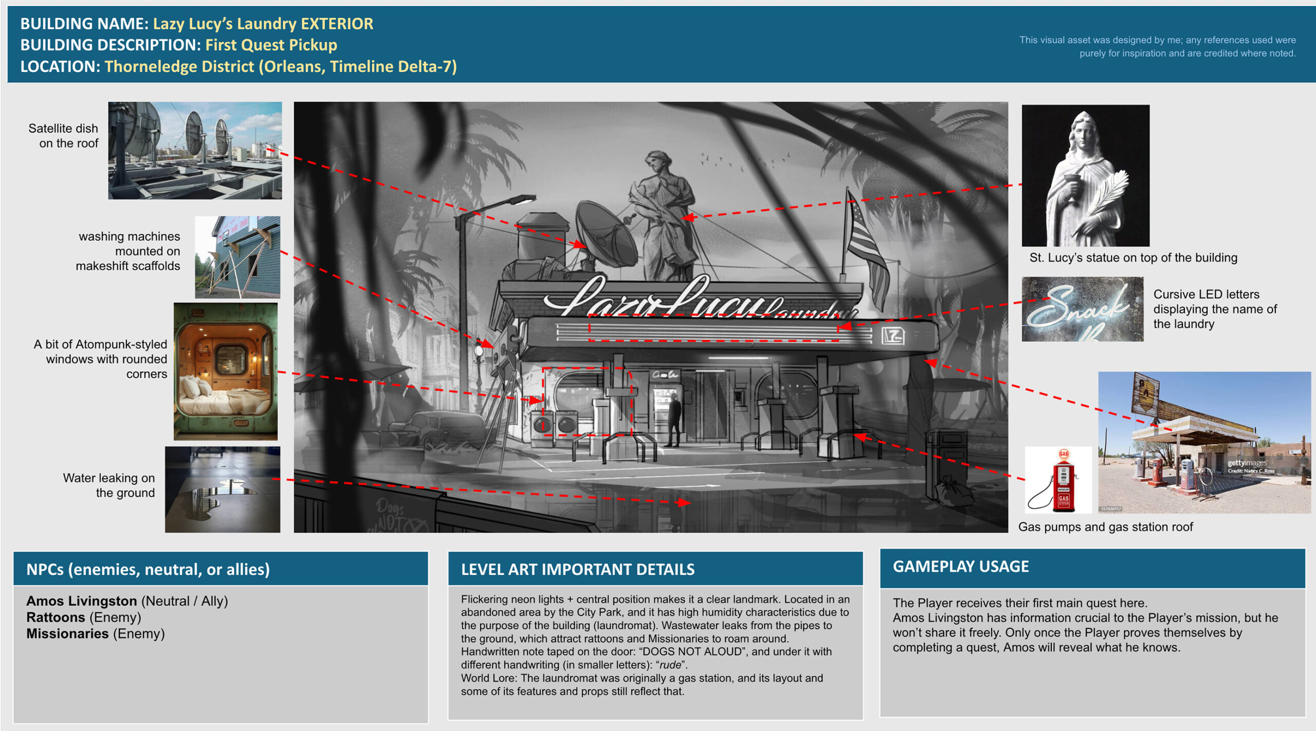 - Role: Narrative Design, Worldbuilding, Lore, Dialogue, Barks, Character design, VA sheets