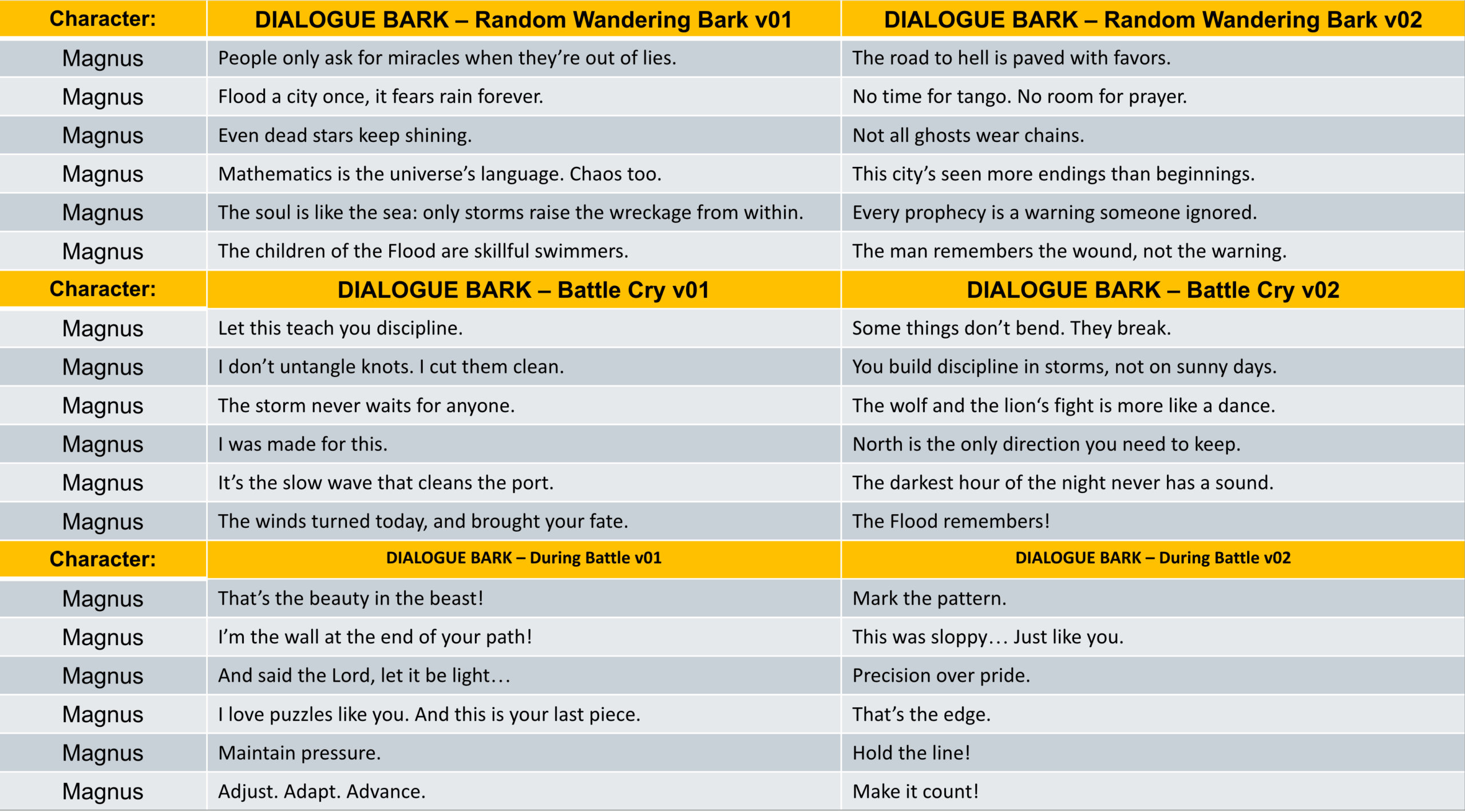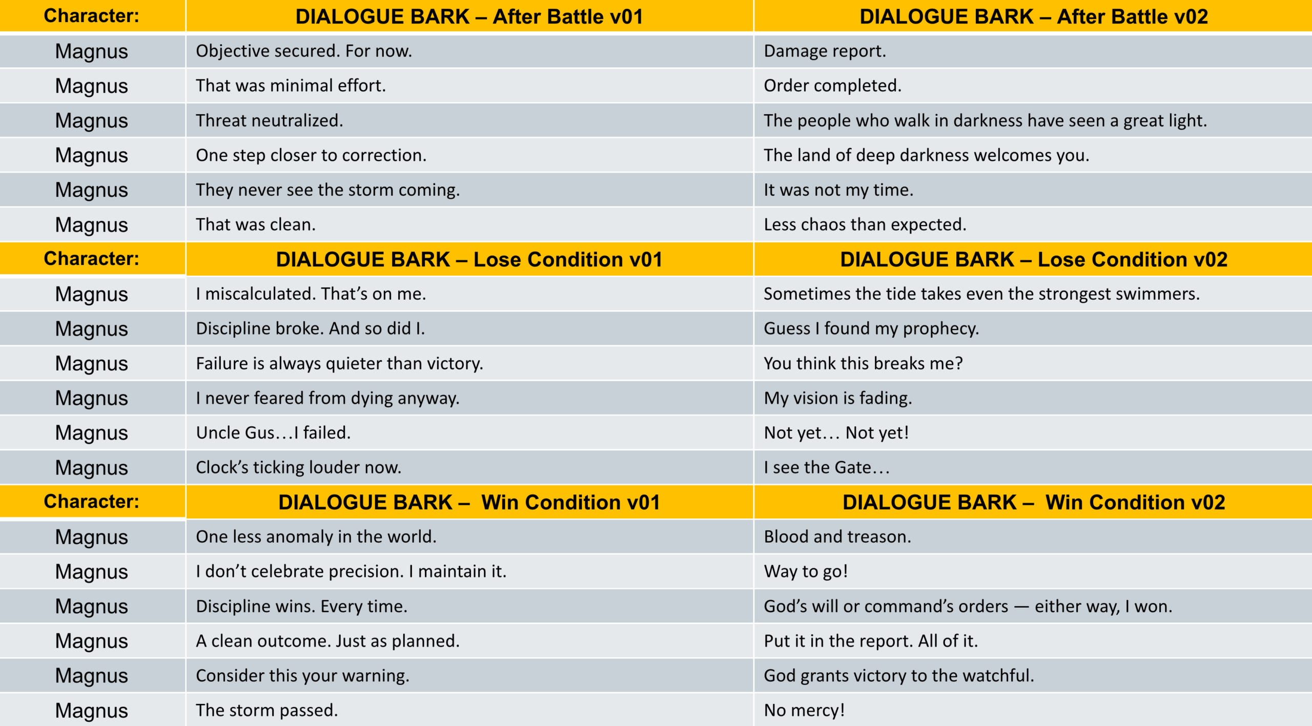 To support high-quality character performance and collaboration across disciplines, I developed a full Voice Over documentation for Pathfinder.