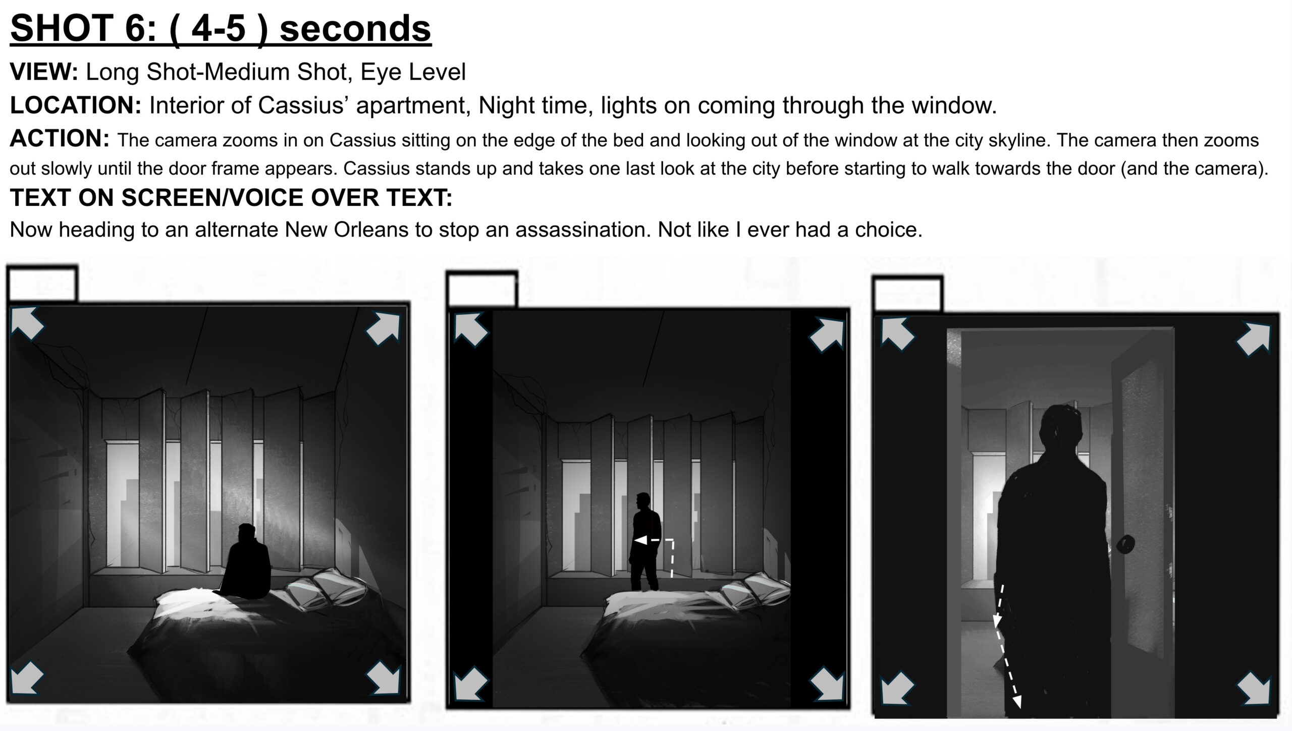 I wrote and storyboarded a trailer script where the player gets to know the main character, his past, conflicts, and what will be their role in the game.