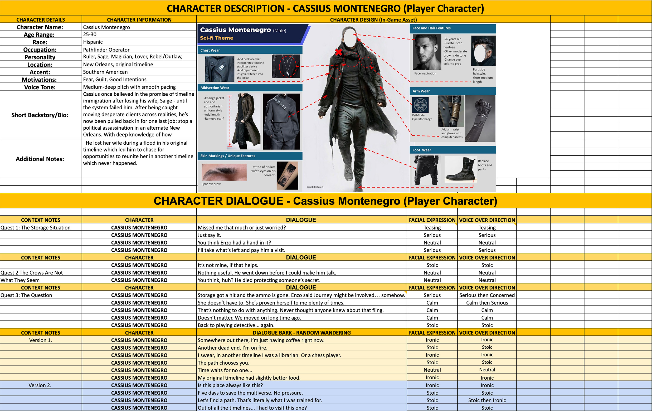 Designed a player character (Cassius Montenegro) whose role in the game places him between loyalty and his personal sacrifice.
